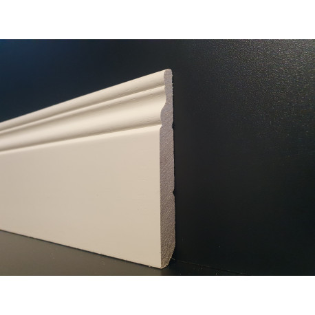Battiscopa legno massello inglese ducale verniciato bianco ral 1013 altezza mm 100 spessore mm 13. Effetto poro semi chiuso. DISPONIBILE ANCHE IN ALTRE FINITURE SOTTO AL PREZZO IN DETTAGLI IN "Seleziona qua sotto la finitura speciale" IN DETTAGLI SCROLLANDO VERSO IL BASSO LA BARRA, PRESENTI ALTRE INFORMAZIONI.