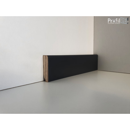 Battiscopa zoccolino in legno impiallacciato verniciato NERO standard bordo quadro mm 50 spessore mm 13.