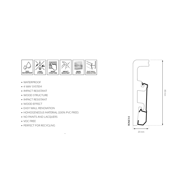 | Descrizione | Battiscopa canaletta passafilo passacavi in duro polimero con effetto vena del legno visibile |