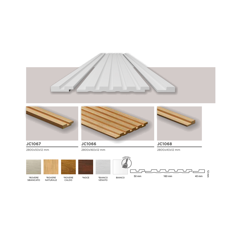 | Descrizione | Profili in duro polimero pronti all'uso AD APPOGGIO O per creare effetto boiserie rigato Rovere caldo |