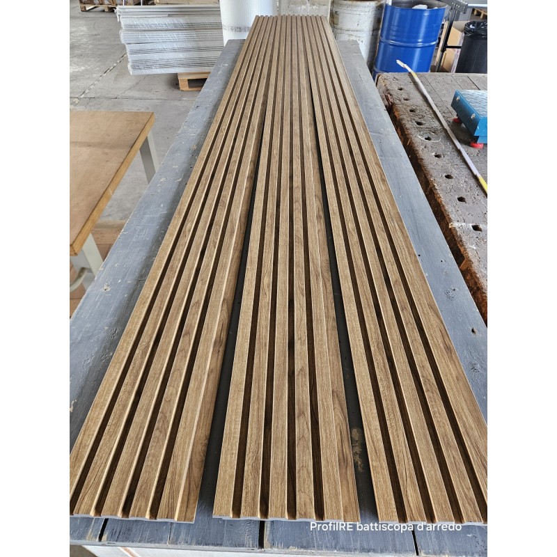 Aste in duro polimero moderne effetto rigato pronte all'uso per rivestire pareti con lunghezza aste cm 280 larghezza mm 160 spessore mm 12. Colore Rovere caldo. PRESENTI ALTRE INFORMAZIONI E VIDEO PRESENTAZIONE DISPONIBILE
